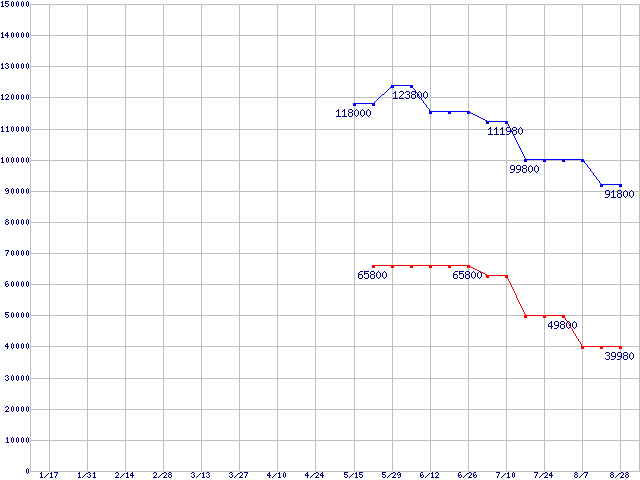 Spinpoint M6 (5400rpm,1.5Gb/s,2.5インチ)の最安値推移
