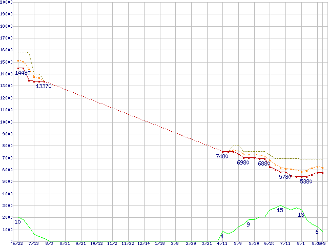 | Athlon X2 4600 (2.4GHz,L2 512KB×2)の価格推移 | | | (2007年6月22日~2008年9月5日) |