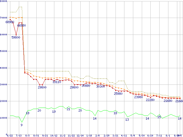 | Core 2 Quad Q6600 (2.40GHz,L2 4MB×2)の価格推移 | | | (2007年6月22日~2008年9月5日) |