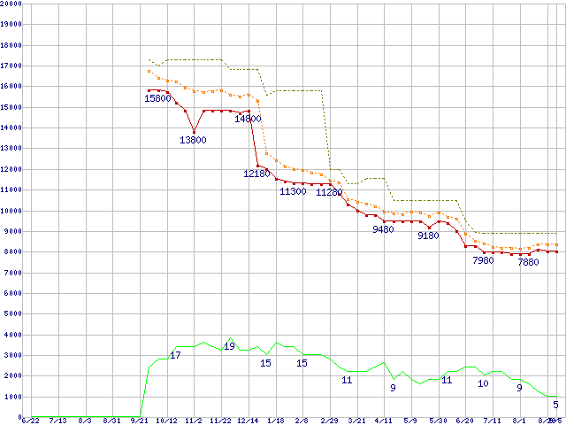 | Athlon 64 X2 5000+ Black Edition (2.6GHz,L2 512KB×2)の価格推移 | | | (2007年6月22日~2008年9月5日) |