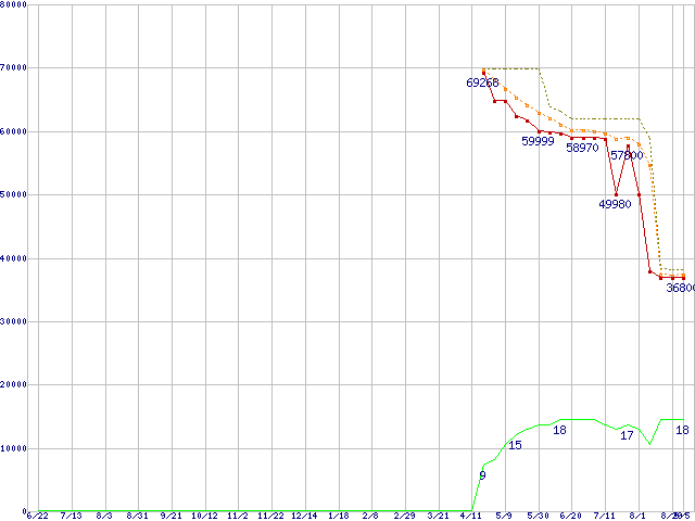 | Core 2 Quad Q9550 (2.83GHz,L2 6MB×2)の価格推移 | | | (2007年6月22日~2008年9月5日) |