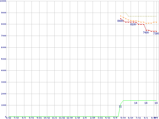 | Athlon X2 4450e (2.3GHz,L2 512KB×2)の価格推移 | | | (2007年6月22日~2008年9月5日) |