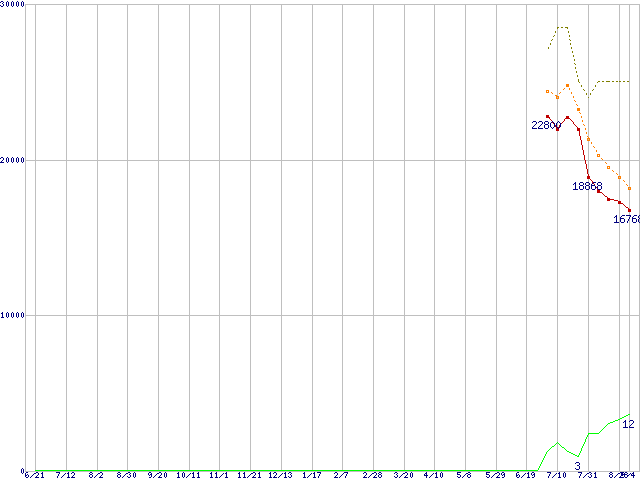| HTS723232L9A360 (320GB,16MB)の価格推移 | | | (2007年6月21日~2008年9月4日) |