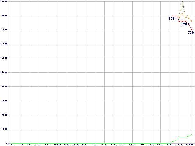 | MHZ2250BH (250GB,8MB)の価格推移 | | | (2007年6月21日~2008年9月4日) |