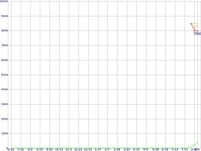| WD2500BEVT (250GB,8MB)の価格推移 | | | (2007年6月21日~2008年9月4日) |