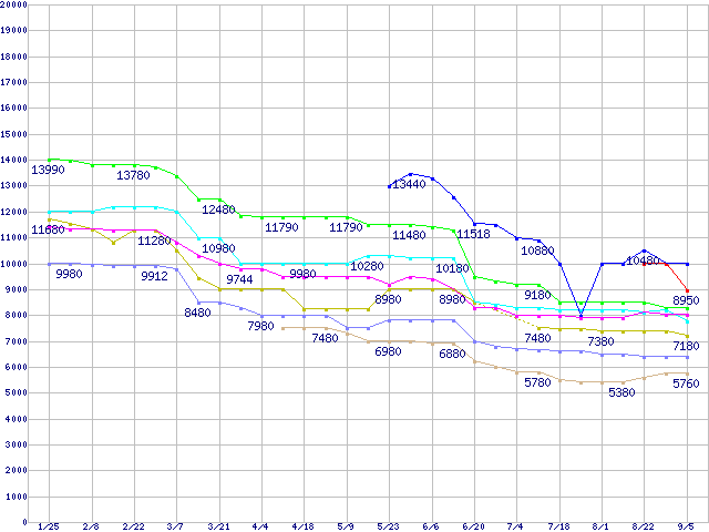Socket AM2 (HyperTransport,Dual Core)の最安値推移