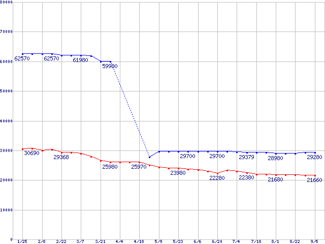 LGA775 (FSB 1333MHz,Dual Core,TDP 65W)の最安値推移