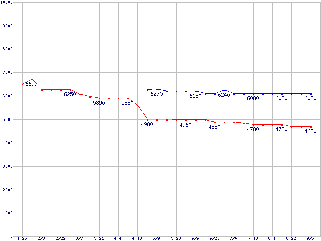 Socket AM2 (HyperTransport,Dual Core,TDP 65W)の最安値推移
