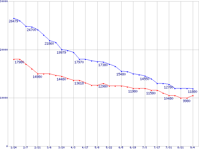 WD Caviar Blue (7200rpm,3Gb/s,16MB)の最安値推移