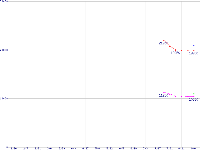 WD Scorpio Blue (5400rpm,3Gb/s,2.5インチ)の最安値推移