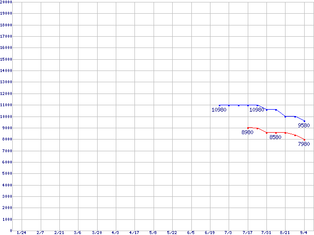 WD VelociRaptor (10000rpm,3Gb/s,16MB)の最安値推移