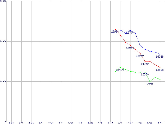 Deskstar P7K500 (7200rpm,3Gb/s)の最安値推移