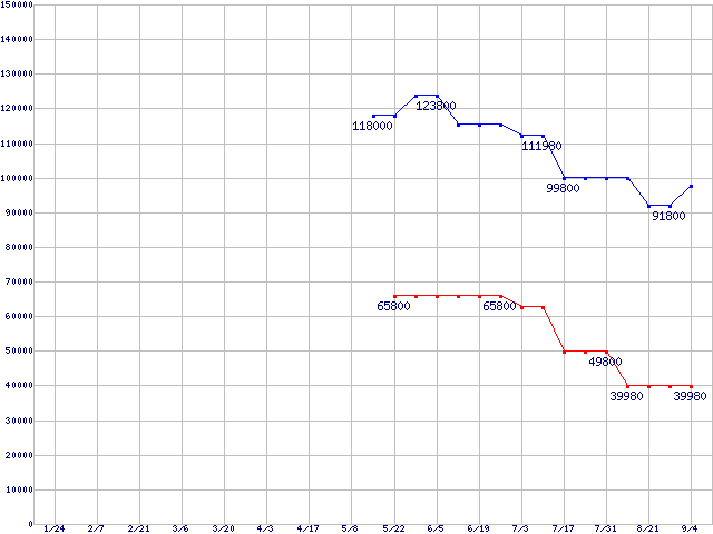 2.5" Standard Type (SSD,3Gb/s,2.5インチ)の最安値推移