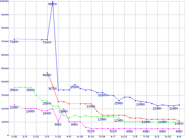 PC2-6400(DDR2-800) DDR2 SDRAM DIMMの最安値推移