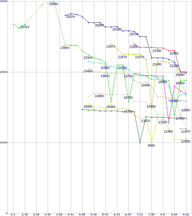 ※製品名をクリックすると個別のグラフを表示します ※点線部は販売店が確認できなかった、または調査データがないことを示します |