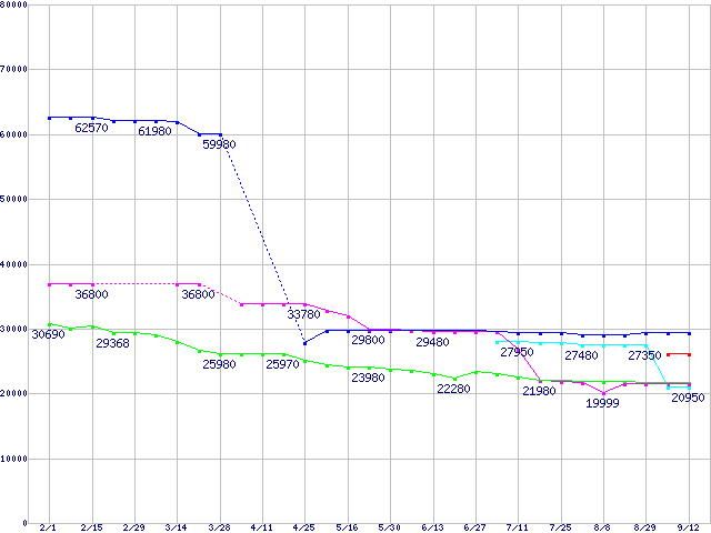 CPU主要製品(最安値3万円~6万円未満)の最安値推移