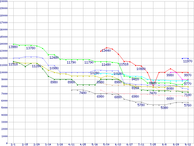| AMD系CPUの最安値推移 | | | (2008年2月1日~2008年9月12日) |