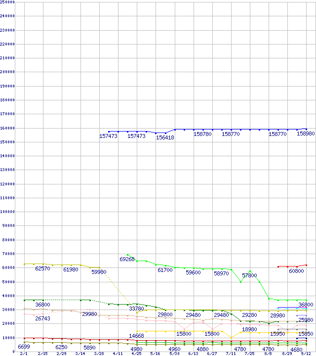 | Intel系CPUの最安値推移 | | | (2008年2月1日~2008年9月12日) |