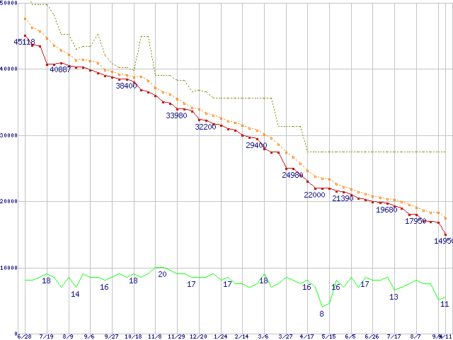 | HDS721010KLA330 (1TB,32MB)の価格推移 | | | (2007年6月28日~2008年9月11日) |