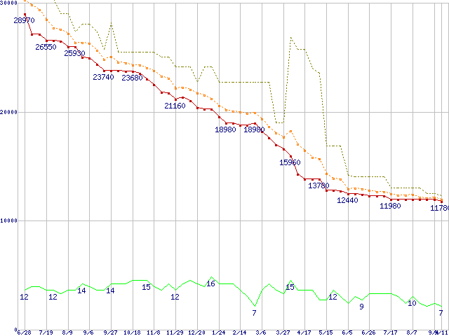 | HDS721075KLA330 (750GB,32MB)の価格推移 | | | (2007年6月28日~2008年9月11日) |