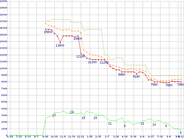 | Athlon 64 X2 5000+ Black Edition (2.6GHz,L2 512KB×2)の価格推移 | | | (2007年6月29日~2008年9月12日) |