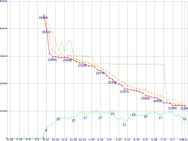 | WD10EACS (1TB,16MB)の価格推移 | | | (2007年6月28日~2008年9月11日) |