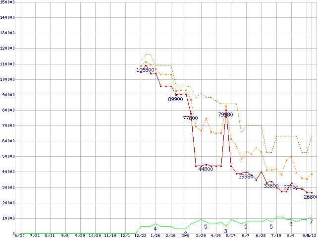 PC3-12800(DDR3-1600) DDR3 SDRAM DIMMの最安値推移