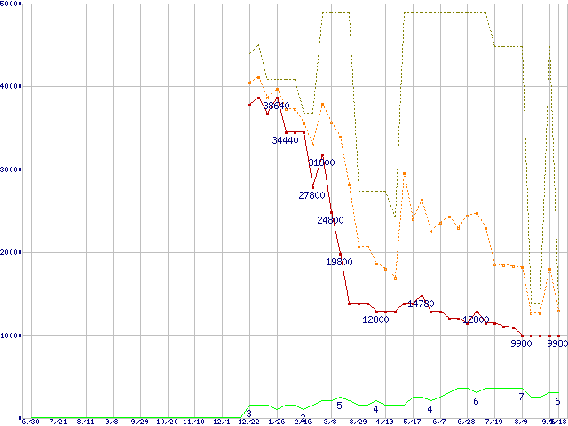 PC3-8500(DDR3-1066) DDR3 SDRAM DIMMの最安値推移