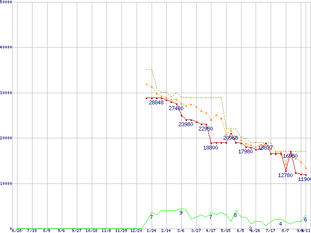 | HD103UJ (1TB,32MB)の価格推移 | | | (2007年6月28日~2008年9月11日) |