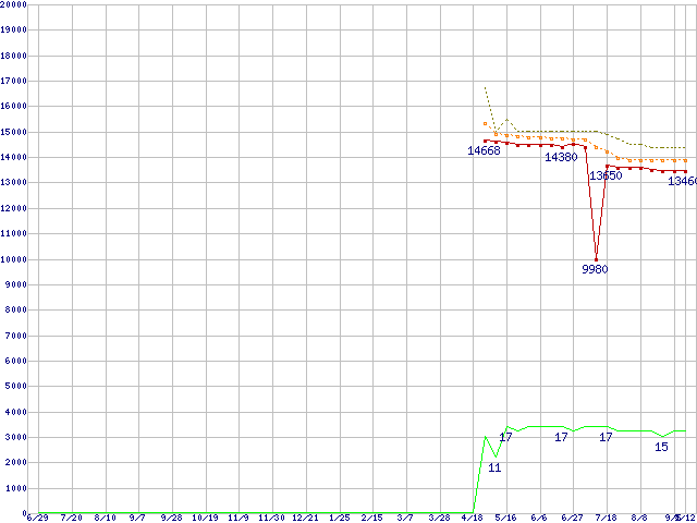 | Core 2 Duo E7200 (2.53GHz,L2 3MB)の価格推移 | | | (2007年6月29日~2008年9月12日) |