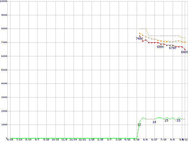 | Athlon X2 4050e (2.1GHz,L2 512KB×2)の価格推移 | | | (2007年6月29日~2008年9月12日) |