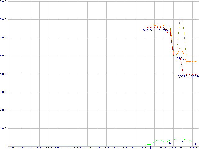 | MCBQE32G5MPP-0VA (32GB,SLC)の価格推移 | | | (2007年6月28日~2008年9月11日) |