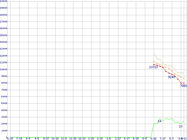 | ST3640323AS (640GB,32MB)の価格推移 | | | (2007年6月28日~2008年9月11日) |