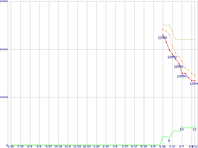 | HTS723225L9A360 (250GB,16MB)の価格推移 | | | (2007年6月28日~2008年9月11日) |