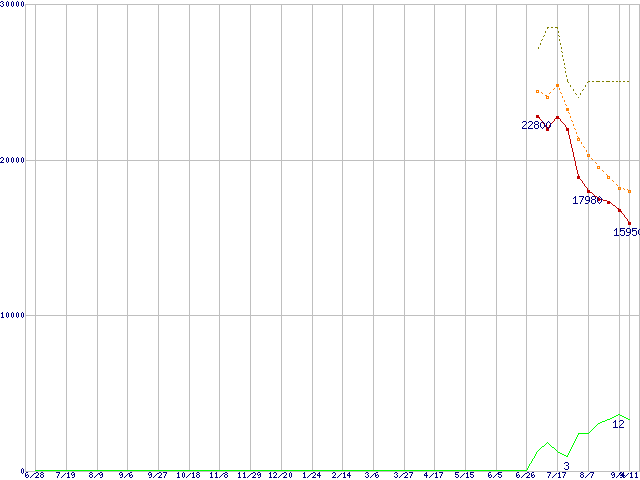 | HTS723232L9A360 (320GB,16MB)の価格推移 | | | (2007年6月28日~2008年9月11日) |