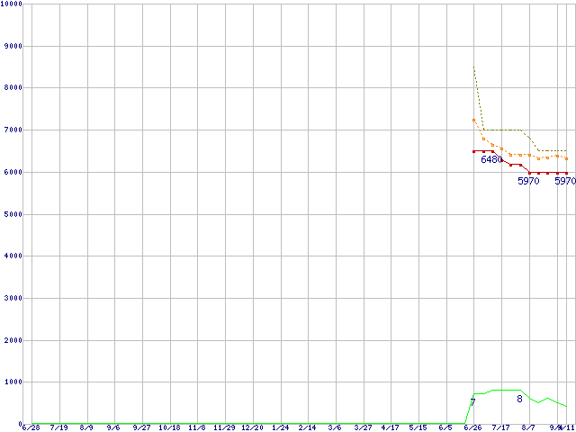 | WD1600BEVT (160GB,8MB)の価格推移 | | | (2007年6月28日~2008年9月11日) |