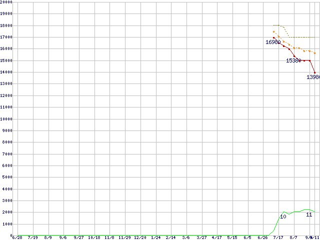 | WD7501AALS (750GB,32MB)の価格推移 | | | (2007年6月28日~2008年9月11日) |