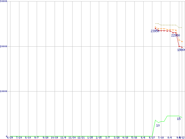 | Phenom X4 9350e (2.0GHz,L2 512KB×4,L3 2MB)の価格推移 | | | (2007年6月29日~2008年9月12日) |