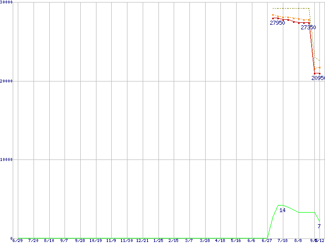 | Phenom X4 9950 Black Edition (2.6GHz,L2 512KB×4,L3 2MB)の価格推移 | | | (2007年6月29日~2008年9月12日) |