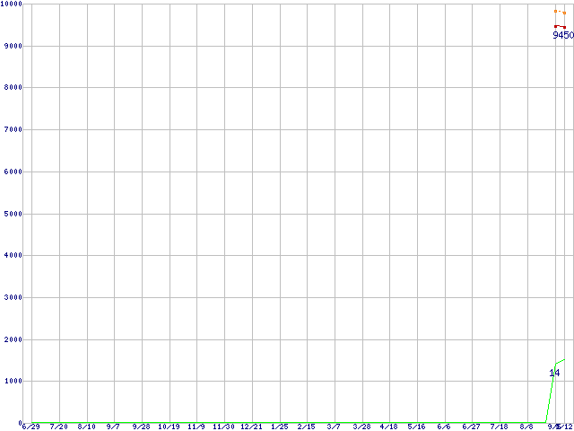 | Pentium Dual-Core E5200 (2.5GHz,L2 2MB)の価格推移 | | | (2007年6月29日~2008年9月12日) |