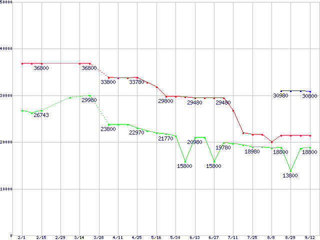 LGA775 (FSB 1066MHz,Dual Core,TDP 65W)の最安値推移