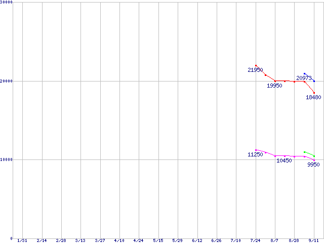 WD Caviar Blue (7200rpm,3Gb/s,16MB)の最安値推移