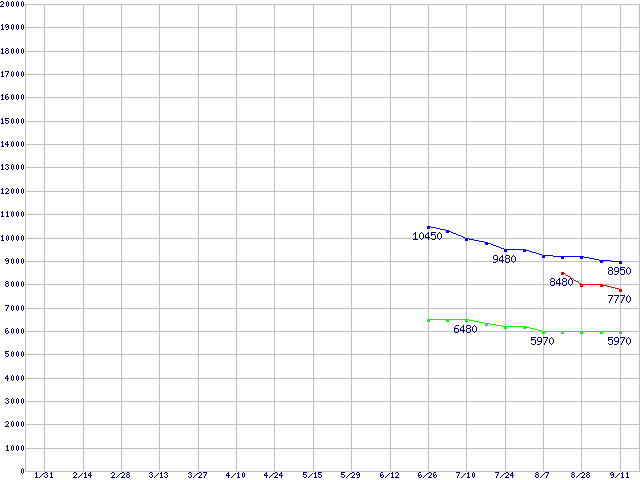 WD Scorpio Blue (5400rpm,3Gb/s,2.5インチ)の最安値推移