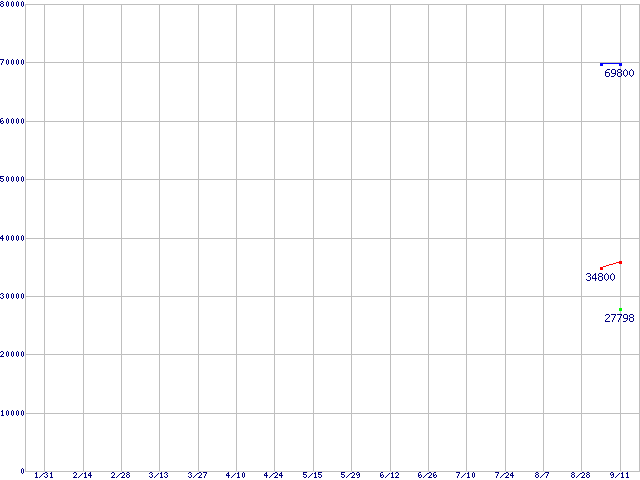 | OCZ Core Series V2 SATA II 2.5" SSD (SSD,3Gb/s,2.5インチ)の最安値推移 | | | (2008年1月31日~2008年9月11日) |