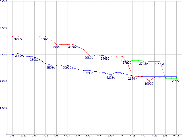 CPU主要製品(最安値2万円~3万円未満)の最安値推移