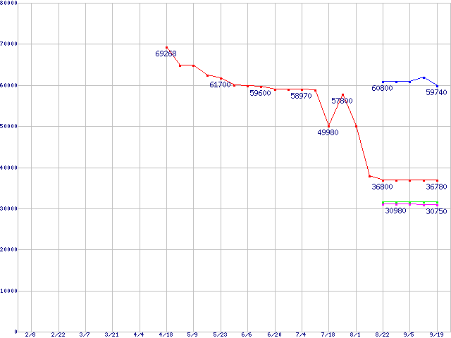 CPU主要製品(最安値3万円~6万円未満)の最安値推移