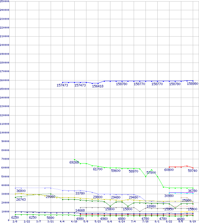 | Intel系CPUの最安値推移 | | | (2008年2月8日~2008年9月19日) |