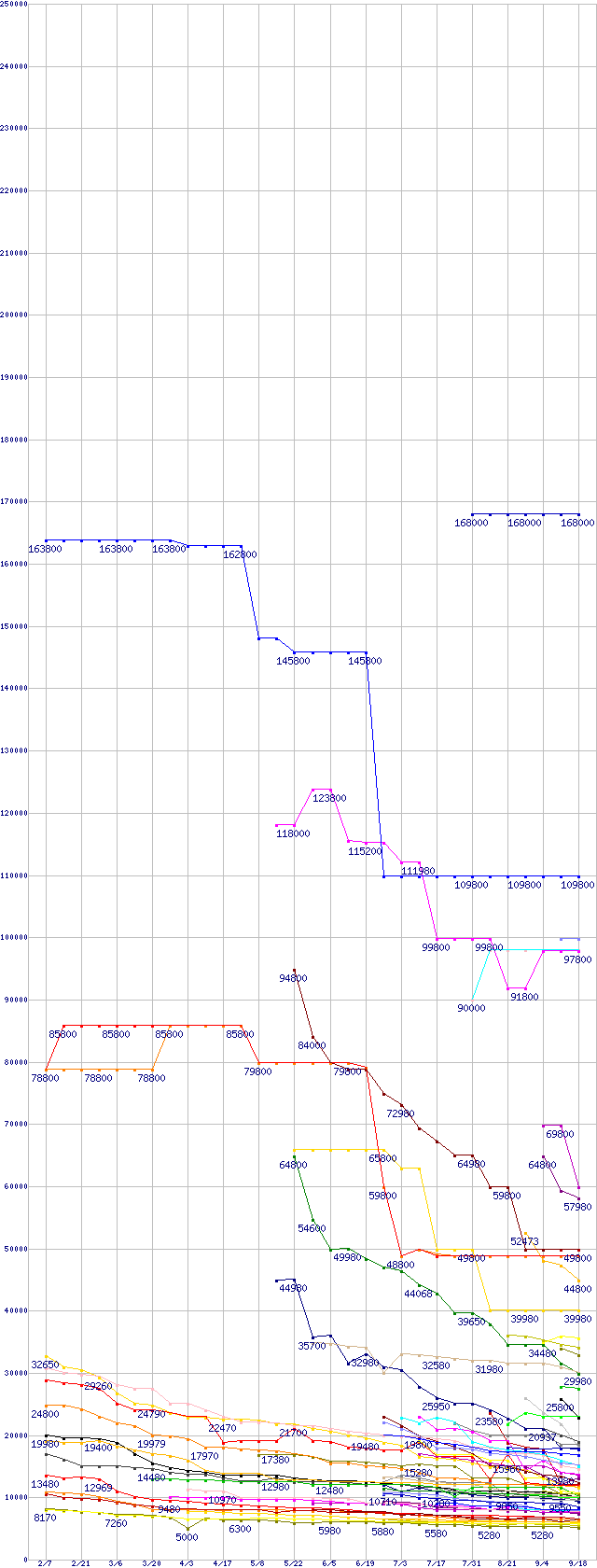 HDD/SSD主要製品の最安値推移