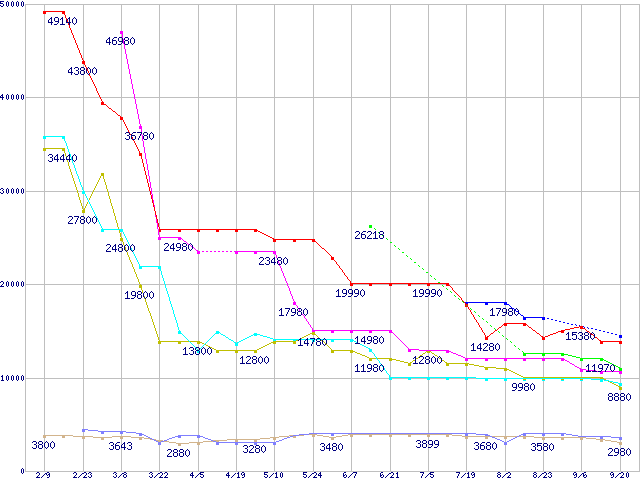 ※点線部は販売店が確認できなかった、または調査データがないことを示します