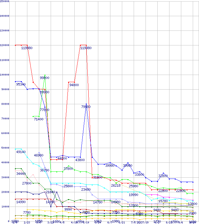 ※点線部は販売店が確認できなかった、または調査データがないことを示します